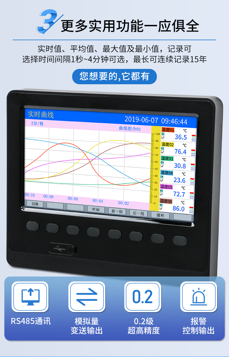 簡(jiǎn)要描述:工業(yè)無紙記錄儀,6 通道萬能輸入,160*80 面板尺寸。可輸入電流、電壓、熱電偶、熱電阻和頻率等工業(yè)信號(hào),以數(shù)值、棒和曲線形式實(shí)時(shí)顯示數(shù)據(jù),定時(shí)將數(shù)據(jù)存儲(chǔ)于儀表內(nèi)部電子存儲(chǔ)器,可通過 USB 設(shè)備快速轉(zhuǎn)存歷史數(shù)據(jù)。
